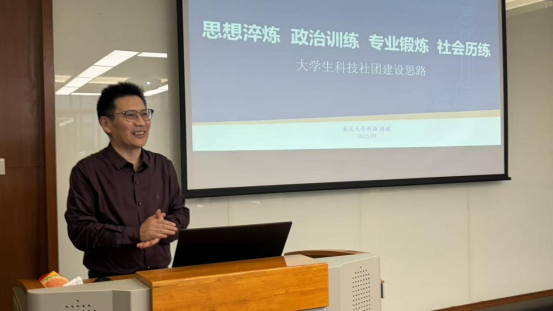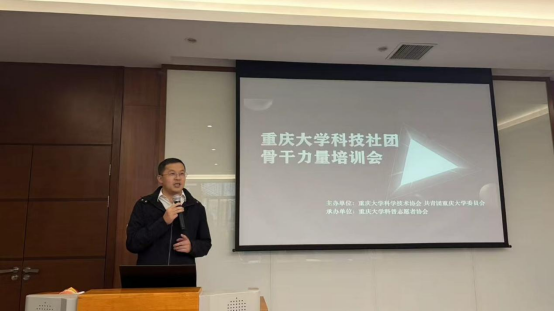 10月26日下午,重庆大学学生科技社团骨干力量培训会在虎溪校区理科楼举行。校团委书记于佳佳、校科协秘书长周斌、资源与安全学院教授许江以及大学生科技社团的70余名骨干成员出席会议。