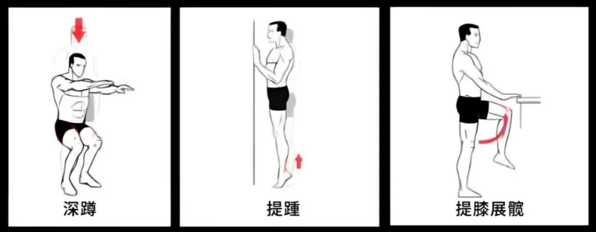 ✅ 提踵:站立抬起后脚跟,使小腿肌肉收缩,然后脚跟慢慢回到地面。